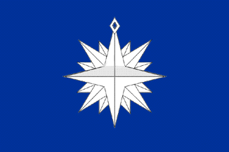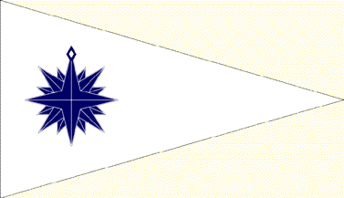 Miru Takano, 7 November 1999The Coastal Safety Force flag had a field three by two composed of fifteen horizontal stripes of equal width, eight white and seven blue; over all, in generous proportions, a conventionalized cherry blossom in red. It was established by the National Safety Agency (the Ministry responsible for the activities of the National Safety Force and the Coastal Safety Force), Notification No.2, dated October 31st, 1952, for use afloat and on the shore. In the former instance, ships displayed it at the gaff, with the National and Merchant Flag at the ensign-staff. At a shore establishment, the two flags were flown equally at the truck of the flag-staff.
