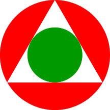 Red disc with an inscribed white triangle pointing upwards, and a green disc within the triangle.