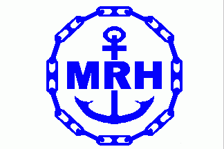 White flag with blue anchor, superimposed by an inscription ”MRH” in blue