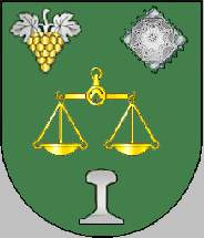 Shield Vert, a pair of scales Or, in chief a grapevine Or leaved Argent at dexter and an open-worked handkerchief Argent (placed like a squarish rhomb). In base a railway profile Argent. Mural crown Argent with three visible towers (village rank) and white scroll with inscription in black capitals "CARREIRA - BARCELOS"