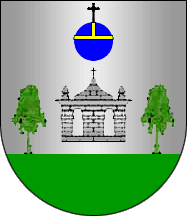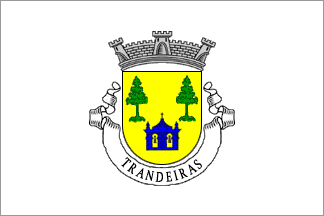Shield Or, two eradicated pines Vert, a belfry Azure with bells Sable, all charges ordered 2:1. Mural crown Argent with three visible towers (village rank) and white scroll reading in black upper case serifed letters "TRANDEIRAS".
