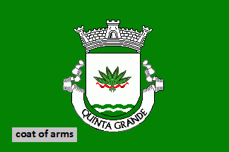 Coat of Arms: Shield Argent with base wavy of Vert and Argent, a bunch of six rye ears Vert tied Gules. Mural crown Argent with visible three towers (village rank) and white scroll with inscription in black capitals: "QUINTA GRANDE".