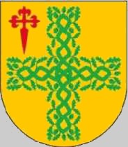 The knight also appears in the arms of the municipality. It is St. James the Elder (Port.: São Tiago, Spanish: Santiago), the patron saint and name giver of commune and municipality. The scallop is his attribute.