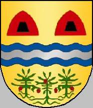 The ovens (Port.: fornos) are canting elements. The bar wavy is representing Calvo River.