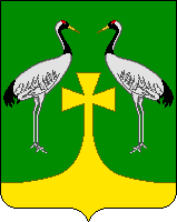In a green field above a golden special part, completed by a cross with three upper widened arms - two standing cranes of natural colors (with golden beaks, black heads in front, throats and tails of the same enamel and scarlet (red) crowns).