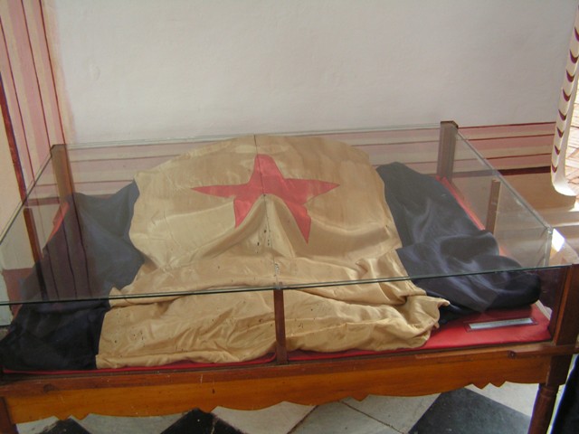I saw this flag seen during my trip in Cuba in the municipal museum of Trinidad. According to the caption in the museum, it dates from 1848. It is similar to the Flag of the Mine Conspiracy of the Cuban Rose, but with a 5-pointed star.