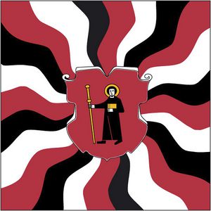 I make it a 3:5 flag, and as the grey background had to be removed anyway I drew a version with that ratio. Since we really only have a black and white image, I picked standard shades of the three colours.