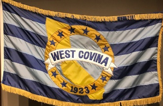 Several obscured/partial views of the West Covina flag, a city in Los Angeles