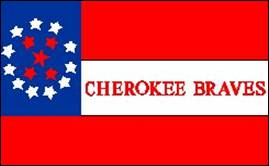 One of my favorite flags was that used by the last confederate General to surrender, Stanhope Watte. It was based on the Stars and Bars, which was in turn based on the Austrian flag of red, white, red horizontal stripes. The blue canton contained 11 white stars in a circle representing the 11 white governments that had left the union and five red stars representing the five Indian nations that joined the confederacy. Across the central bar was inscribed "CHEROKEE BRAVES".