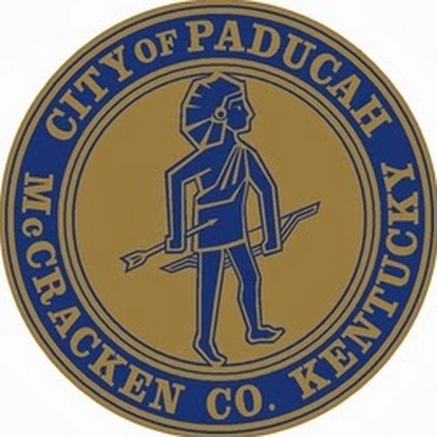 The colors are red, white and blue of the same hues as those in the flag of the United States of America; is composed of three broad vertical panels, a broad white center panel flanked on either side by a slightly narrower red panel. Outlined in blue against the white center panel is a close-up likeness of the head and shoulders of Chief Paduke, the Indian Chief for whom the city was named in 1827 by its founder, General William Clark; a circle of fifteen stars surround the Chief's profile, indicating Kentucky's status as the fifteenth state to enter the Union; underneath the circle of stars appears the date 1827; and the stars and date are also in blue against the white background of the center panel.Daniel Renterķa, 7 February 2024