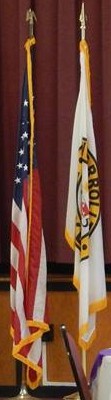 The flag is white with the seal centered.