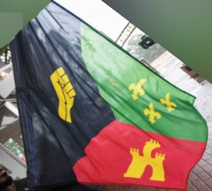 Lafayette artist melding Acadiana pride and Black identity in new Acadiana Black Pride flagDave Fowler, 29 June 2020Cory Stewart, known artistically as Cory St. Ewart, has made a splash at local protest events against racism and police brutality with his adapted Acadiana flag the color scheme redone in black, green, red and yellow, colors common in flags of African countries, and the imagery of the gold star replaced with a clenched black fist.