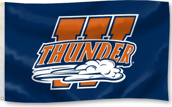 Official flag is orange over dark blue, with seal in the center: