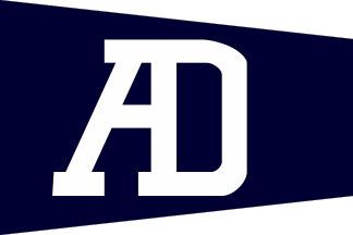 A white swallowtailed pennant bordered in blue with a red trapezoid bearing the name "Atlantic" in white.