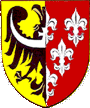 Please note, however, that where two sets of dimidiated arms or any elements thereof are set side by side (as illustrated above), in heraldic terms they are said to be ‘impaled by dimidiation’, and that (whilst this is often the case) one dimidiated charge, or set of dimidiated arms, need not necessarily (as per the example below) be set beside another so halved - see ‘entire 1)’ (also ‘conjoined’).