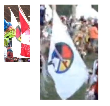 The flag is a white field with the band's emblem centred. Image above based on this photograph.