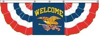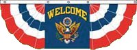 ![]() $90.00 Welcome U.S. Seal 3x9' Nylon Pleated Fan Drape |