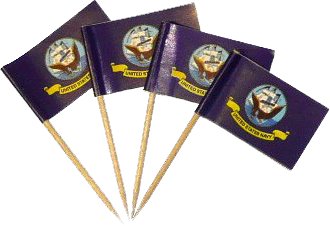 ![]() Navy Toothpick Flags Paper flags mounted on toothpicks. Approximately 100 per pack. $4.00 pack |